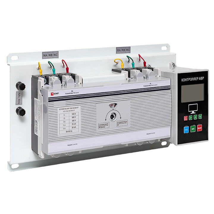 Устройство АВР ТСM EKF предназначено для обеспечения резервным электроснабжением нагрузки, подключенной к системе электроснабжения, имеющей основной и резервный вводы. Устройство АВР автоматически подключает резервную линию питания в случае пропадания напряжения на основной линии. Также устройство АВР ТСM имеет функцию защиты от токов перегрузки и коротких замыканий распределительных сетей и электродвигателей. Устройство АВР ТСM с управлением контроллером может быть настроено на несколько программ переключения.