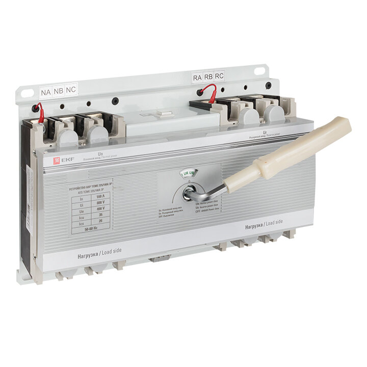 Устройство АВР ТСM EKF предназначено для обеспечения резервным электроснабжением нагрузки, подключенной к системе электроснабжения, имеющей основной и резервный вводы. Устройство АВР автоматически подключает резервную линию питания в случае пропадания напряжения на основной линии. Также устройство АВР ТСM имеет функцию защиты от токов перегрузки и коротких замыканий распределительных сетей и электродвигателей. Устройство АВР ТСM с управлением контроллером может быть настроено на несколько программ переключения.